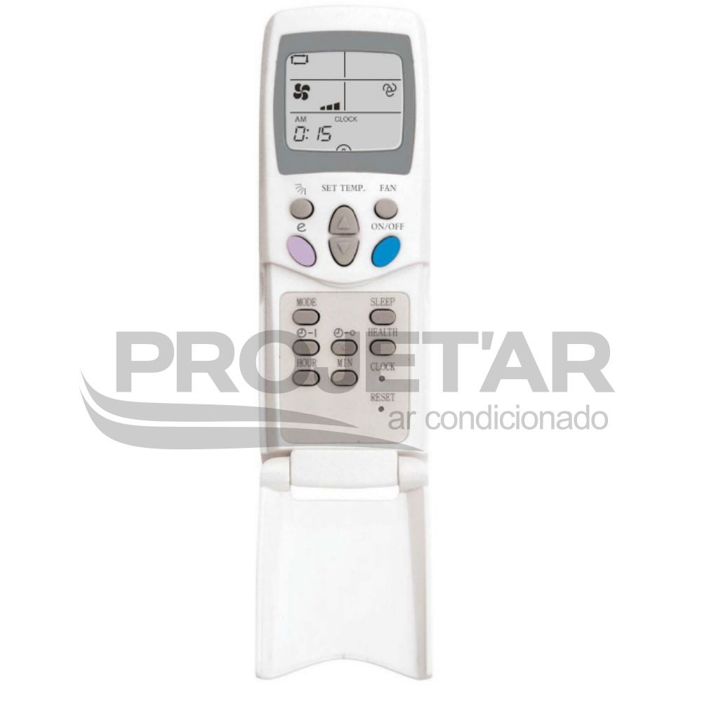 Controle remoto com display de LCD: Permite controle total da unidade nos modos refrigeração, aquecimento, ventilação e desumidificação