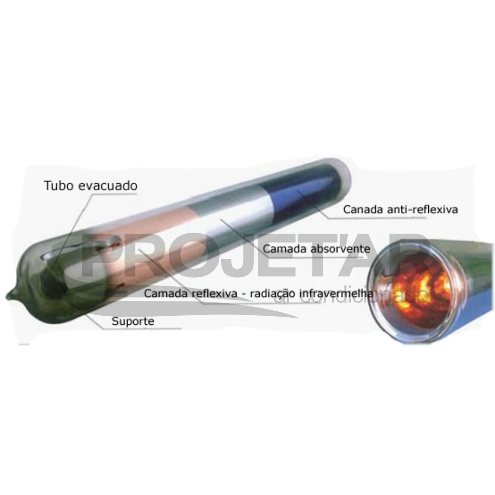 Tubo de vidro à vácuo de boro silicato com espessura de 2mm e alta resistência a impactos (suporta chuva de granizo de até 2cm).